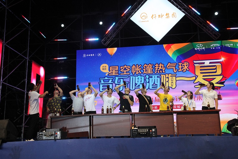 活動現(xiàn)場的最高潮還屬啤酒大賽,十名英雄登臺挑戰(zhàn),其中還有來自貴州安順的兩名女將參加比賽。“冠軍是屬于我的!”臺上的挑戰(zhàn)者高聲呼喊著自己的口號,臺下“加油!雄起!”的歡呼聲更是此起彼伏?!氨荣愰_始!”主持人一聲號令,參賽選手都高舉酒瓶,開懷暢飲!臺下的歡呼聲更是高漲!最終綿竹的一位業(yè)主獲得冠軍,贏得了apple watch3手表,并發(fā)表了奪冠感言:自己只是運(yùn)氣好,能和貴州的業(yè)主朋友同臺競技,增加綿竹和貴州兩地之間的交流,很高興。主持人提議大家共同舉起酒杯為冠軍喝彩!