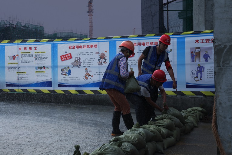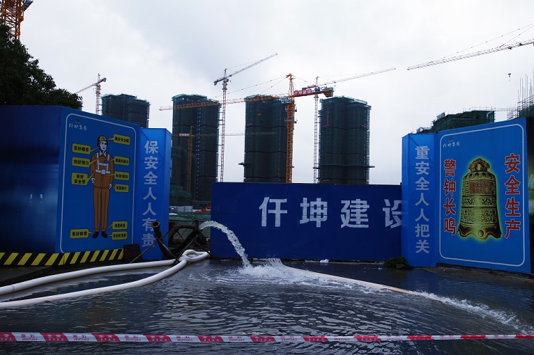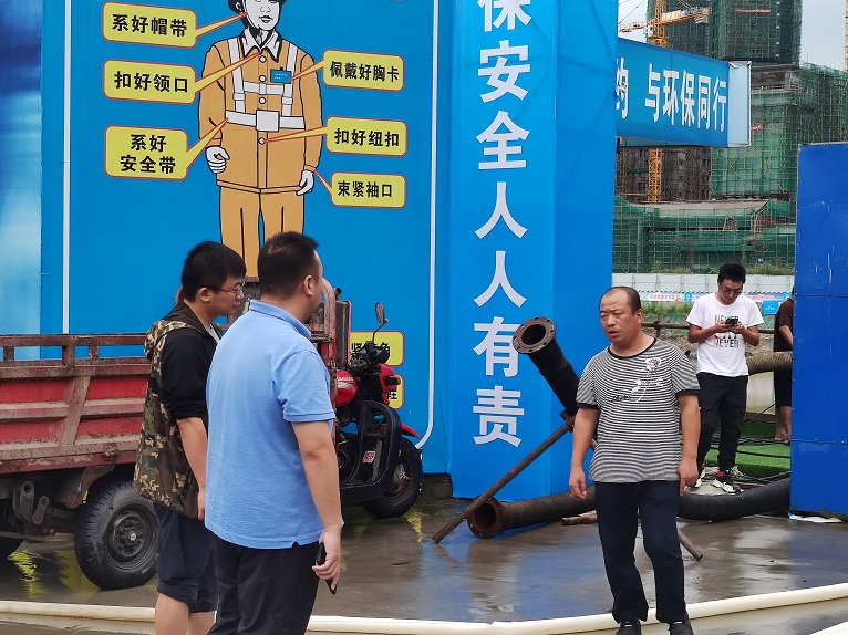 8月16日凌晨,仟坤建設(shè)在建項(xiàng)目多個工地因持續(xù)的暴雨天氣導(dǎo)致工地上集水坑瞬間大量積水,向周邊擴(kuò)散,出現(xiàn)險情,排水防汛迫在眉睫。仟坤建設(shè)總經(jīng)理詹偉帶領(lǐng)仟坤建設(shè)防汛應(yīng)急小組迅速做出反應(yīng),采取多地同步展開的處理方式,水街東區(qū)項(xiàng)目經(jīng)理王天華、水街東區(qū)項(xiàng)目經(jīng)理王明亮、天璽項(xiàng)目經(jīng)理薛昌均帶領(lǐng)各個小組堆砌沙袋、連接電路、抽水泵安裝、排水口疏通各項(xiàng)措施同步展開,安排各位置輪流值守,在一個通宵的奮戰(zhàn)之后降低了水位,險情得到了有效控制。