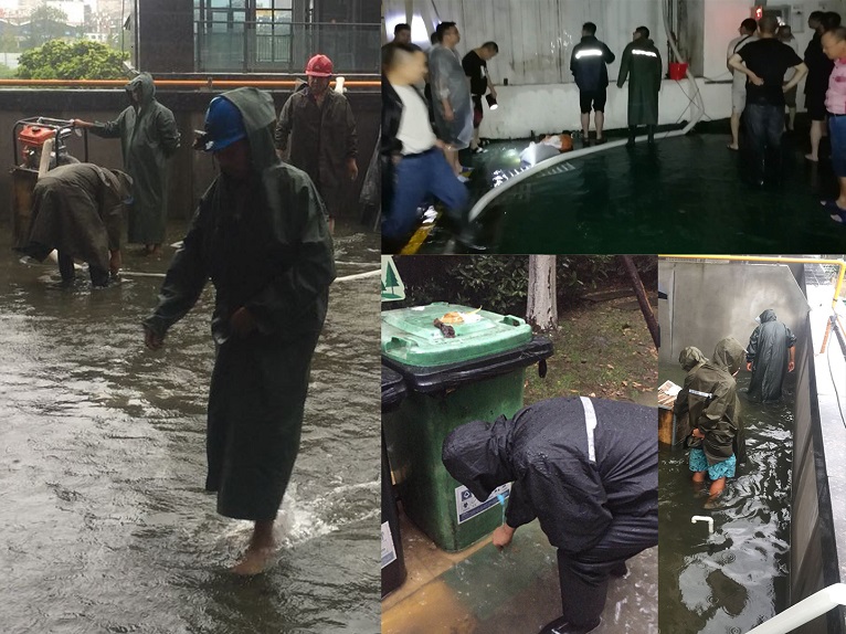 8月16日凌晨1點(diǎn),仟坤物業(yè)的微信工作群發(fā)來消息“各個單位注意,仟坤國際地下停車場出現(xiàn)大量積水,請各方馳援仟坤國際...”一場防汛排水的阻擊戰(zhàn)在凌晨1點(diǎn)正式打響。仟坤物業(yè)總經(jīng)理唐烺峰任副指揮,帶領(lǐng)仟坤物業(yè)防汛應(yīng)急小組來到出現(xiàn)積水的停車場隨后仟坤建設(shè)防汛應(yīng)急小組和宏運(yùn)公交防汛應(yīng)急小組趕到現(xiàn)場,疏散地下室車輛、對地下室出入口阻擋、工程組對地下室積水進(jìn)行排除,10厘米、8厘米、5厘米積水以肉眼可見的速度被排出,終于在8月16日早上8點(diǎn)解除汛情。還未來得及調(diào)整和喘息,夜里10點(diǎn)仟坤天朗部分區(qū)域出現(xiàn)積水,他們再次打起精神卯足勁繼續(xù)投入到新的戰(zhàn)斗,直至第二天早上五點(diǎn)排除險情。連續(xù)兩天無休參與到防汛搶險的任務(wù),無論是公司高層領(lǐng)導(dǎo),還是普通崗位的基層職工,他們挽起褲腿奮戰(zhàn)在防汛一線,凝聚力和戰(zhàn)斗力在此刻得到了充分的體現(xiàn)。仟坤物業(yè)總經(jīng)理唐烺峰表示:身為黨員,就應(yīng)該在急難限重的時刻走在最前面;身為領(lǐng)導(dǎo),就應(yīng)該在危急時刻當(dāng)好標(biāo)桿做好表率。能夠很好的控制汛情,是對業(yè)主生命和財產(chǎn)安全的最好保障,我們要確保能夠安全度過汛期,給業(yè)主一個安心、舒心的居住環(huán)境。
