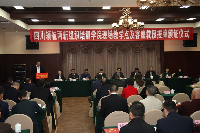 11:00分,在麓棠溫泉會議中心,四川領(lǐng)航兩新組織培訓(xùn)學(xué)院現(xiàn)場教學(xué)點(diǎn)及客座教授授牌頒證儀式正式開始,在綿竹市委常委、組織部部長、市委兩新工委書記李偉同志致辭之后,由德陽市委“兩新”工委專職副書記張興鴻、四川領(lǐng)航兩新組織培訓(xùn)學(xué)院常務(wù)副院長許應(yīng)船為德陽市23個現(xiàn)場教學(xué)點(diǎn)授牌并頒發(fā)“特聘教授”、“兩新智庫”研究員聘書。張書記要求被授予現(xiàn)場教學(xué)點(diǎn)的兩新組織要珍惜榮譽(yù)、搶抓機(jī)遇、乘勢而上,要充分發(fā)揮政治引領(lǐng)、思想引領(lǐng)、實踐引領(lǐng)作用,為推動經(jīng)濟(jì)社會高質(zhì)量發(fā)展貢獻(xiàn)兩新力量。