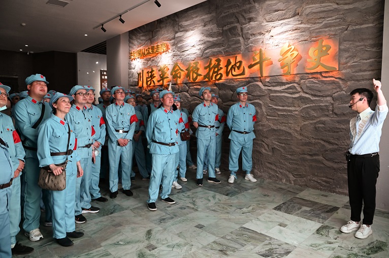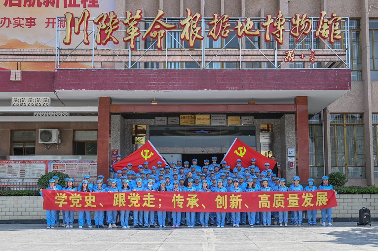 5月8日上午,集團領導、全體黨員、中層以上干部身著紅軍服,來到位于巴州區(qū)的川陜革命根據(jù)地博物館,“12萬巴山兒女參加紅軍,4.8萬人英勇犧牲......”大家跟隨講解員仔細聆聽中國工農(nóng)紅軍第四方面軍將士的豐功偉績,感受他們堅定革命信仰、勇往直前、不畏犧牲的革命精神。“我志愿加入中國共產(chǎn)黨,擁護黨的綱領......”在川陜革命根據(jù)地博物館文化廣場,全體黨員在集團黨委書記周述軍的帶領下整齊列隊,高舉右拳、莊嚴重溫入黨誓詞,更加堅定“聽黨話、跟黨走”的信念。