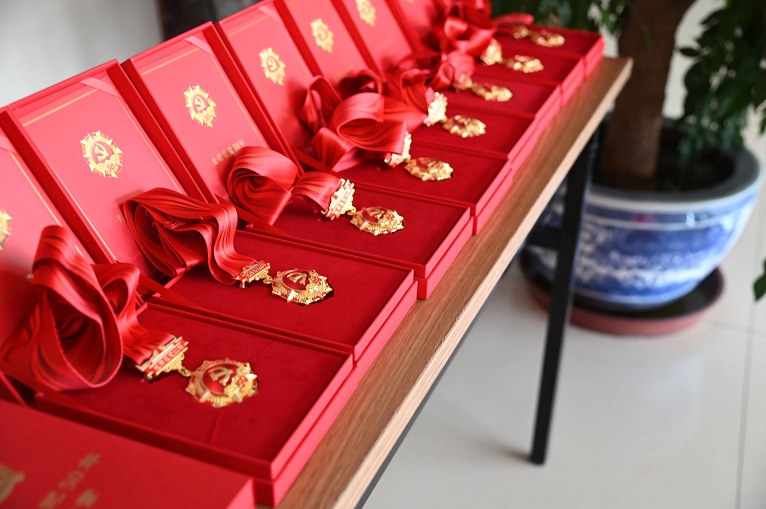 隨后,向副主任和周書記為今天到場的8名黨齡50年以上的老黨員頒發(fā)、佩戴“光榮在黨50年”紀念章,握手致意,并合影留念。