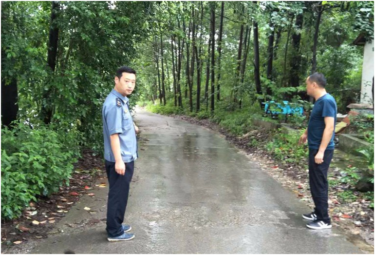 (市運管所股長鄧銳查看東普村路段路面情況)