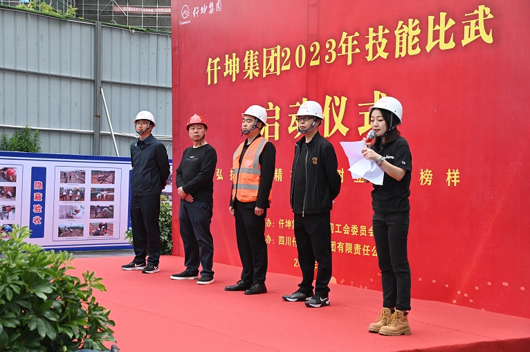 集團(tuán)為加強(qiáng)各公司高技能人才隊伍建設(shè),提高技能操作隊伍素質(zhì),推動職業(yè)技能大賽和技術(shù)比武活動有效開展,為鼓勵廣大員工立足崗位、創(chuàng)先爭優(yōu),造就有思想、有技術(shù)、敢創(chuàng)新的技能人才隊伍,營造“練中學(xué)、學(xué)中干”的良好學(xué)習(xí)工作氛圍。5月8日上午,由集團(tuán)工會主辦,仟坤建設(shè)承辦的“仟坤集團(tuán)2023年技能比武啟動儀式”在仟坤建設(shè)天朗五期項目部隆重啟動。集團(tuán)副董事長甯福富,集團(tuán)黨委書記、副總裁周述軍,集團(tuán)副總裁趙新強(qiáng),各分公司總經(jīng)理及仟坤建設(shè)技能比武的裁判員和比賽選手參與了啟動儀式。啟動儀式由集團(tuán)黨委副書記、人力資源部部長董云龍主持。