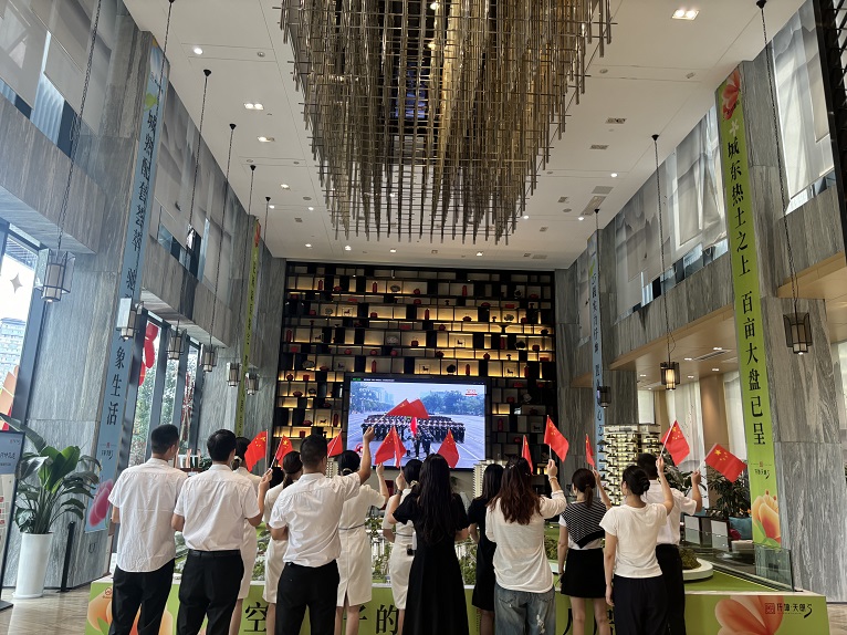 仟坤集團(tuán)黨委積極響應(yīng)號召,迅速組織開展觀看活動。集團(tuán)總裁謝澤波帶領(lǐng)集團(tuán)領(lǐng)導(dǎo)層及總部員工集中在集團(tuán)一樓會議室收看直播。集團(tuán)各分(子)公司、項(xiàng)目部,通過集中觀看、手機(jī)直播等多種形式同步參與。讓全體仟坤職工在共同回望民族抗戰(zhàn)歷史的過程中,見證國之盛典的歷史時(shí)刻。