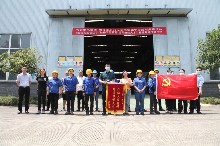 下午2:30分,東方電氣集團(tuán)柯部長(zhǎng)一行先后參觀了集團(tuán)陳列室、鑫坤機(jī)械三大主車間和集團(tuán)黨群活動(dòng)中心,并在鑫坤機(jī)械重型加工車間進(jìn)行了“弘揚(yáng)工匠精神、培育技能人才”授旗儀式。在接下來的簽約儀式上,綿竹市宣傳部副部長(zhǎng)、市新時(shí)代文明實(shí)踐中心辦公室副主任、市社科聯(lián)主席劉薇介紹了新時(shí)代文明實(shí)踐活動(dòng)背景,并指出通過共建活動(dòng),要做到彼此促進(jìn)、優(yōu)勢(shì)互補(bǔ)、資源共享,不斷增強(qiáng)共建雙方黨支部的創(chuàng)造力、凝聚力、戰(zhàn)斗力,努力提升黨建工作科學(xué)化水平。集團(tuán)黨委書記、副總裁周述軍就集團(tuán)黨建工作發(fā)展歷程、“323”黨建工作模式以黨委成立以來所取得的成績(jī)向與會(huì)人員進(jìn)行了簡(jiǎn)單的介紹。