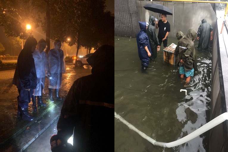 8月16日凌晨1點(diǎn),仟坤物業(yè)的微信工作群發(fā)來消息“各個單位注意,仟坤國際地下停車場出現(xiàn)大量積水,請各方馳援仟坤國際...”一場防汛排水的阻擊戰(zhàn)在凌晨1點(diǎn)正式打響。仟坤物業(yè)總經(jīng)理唐烺峰任副指揮,帶領(lǐng)仟坤物業(yè)防汛應(yīng)急小組來到出現(xiàn)積水的停車場隨后仟坤建設(shè)防汛應(yīng)急小組和宏運(yùn)公交防汛應(yīng)急小組趕到現(xiàn)場,疏散地下室車輛、對地下室出入口阻擋、工程組對地下室積水進(jìn)行排除,10厘米、8厘米、5厘米積水以肉眼可見的速度被排出,終于在8月16日早上8點(diǎn)解除汛情。還未來得及調(diào)整和喘息,夜里10點(diǎn)仟坤天朗部分區(qū)域出現(xiàn)積水,他們再次打起精神卯足勁繼續(xù)投入到新的戰(zhàn)斗,直至第二天早上五點(diǎn)排除險情。連續(xù)兩天無休參與到防汛搶險的任務(wù),無論是公司高層領(lǐng)導(dǎo),還是普通崗位的基層職工,他們挽起褲腿奮戰(zhàn)在防汛一線,凝聚力和戰(zhàn)斗力在此刻得到了充分的體現(xiàn)。仟坤物業(yè)總經(jīng)理唐烺峰表示:身為黨員,就應(yīng)該在急難限重的時刻走在最前面;身為領(lǐng)導(dǎo),就應(yīng)該在危急時刻當(dāng)好標(biāo)桿做好表率。能夠很好的控制汛情,是對業(yè)主生命和財產(chǎn)安全的最好保障,我們要確保能夠安全度過汛期,給業(yè)主一個安心、舒心的居住環(huán)境。
