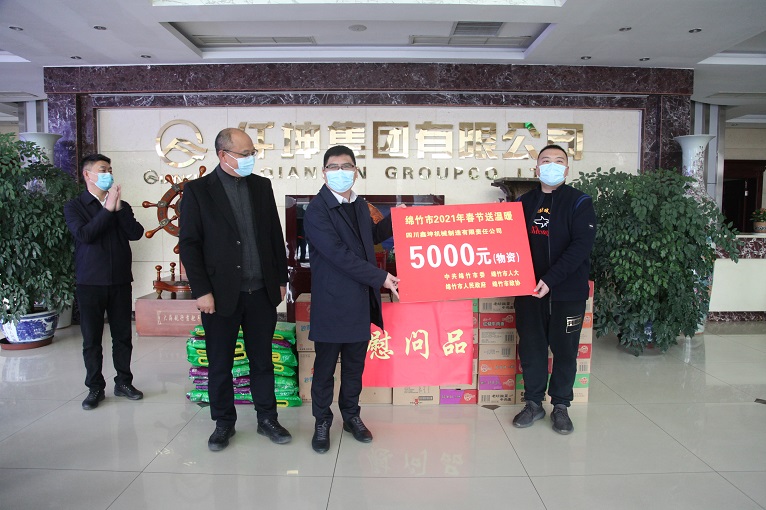 在集團一樓大廳,耿垣合市長為集團送來了春節(jié)慰問物資,同時為“全國勞?!奔瘓F旗下鑫坤機械汽配車間主任趙霞榮同志送來慰問金,耿垣合市長對趙霞榮同志獲得“全國勞?!狈Q號表示祝賀。并對集團為我市經(jīng)濟發(fā)展做出的成績表示感謝,希望繼續(xù)不斷創(chuàng)新為我市實現(xiàn)一季度開門紅作出貢獻。同時,耿垣合市長代表綿竹市委、市政府對全體集團員工致以新春的祝福和誠摯的慰問。