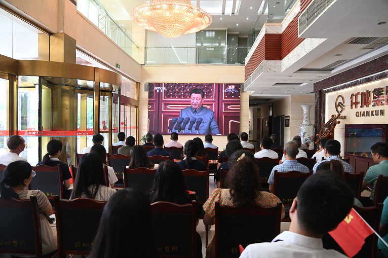 集團董事長謝世千、集團總裁謝澤波,及集團領(lǐng)導(dǎo)層,帶領(lǐng)集團部分黨員、職工代表在集團一樓大廳觀看了大會的盛況,感受中國共產(chǎn)黨百年輝煌奮斗史,聆聽習近平總書記重要講話,奮進新征程。