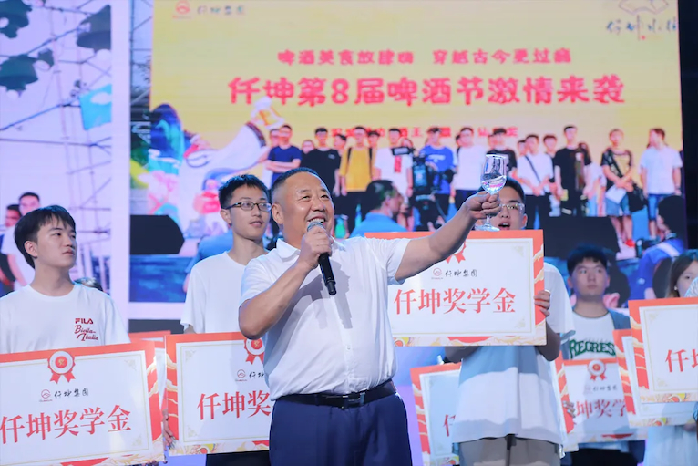 “仟坤小業(yè)主獎學金”的頒發(fā)是仟坤啤酒節(jié)的重要環(huán)節(jié)。今年一共有177位小業(yè)主,總計發(fā)放獎學金31萬元。仟坤集團董事長謝世千向學子們送上滿滿的祝福,愿他們胸懷大志自強自立,譜寫新時代的青春之歌,實現(xiàn)人生更大價值。同時回顧了仟坤集團的發(fā)展歷程,堅定了對未來發(fā)展的信心和期許。小業(yè)主代表也進行了慷慨激昂的演講,整個現(xiàn)場氣氛溫情且動容,全場舉杯共飲!